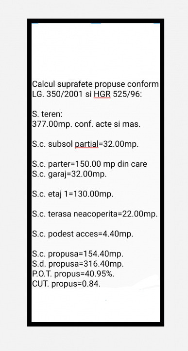 Coeficientii Urbanistici de Construire ai terenului conform indicilor din autorizație sunt:
